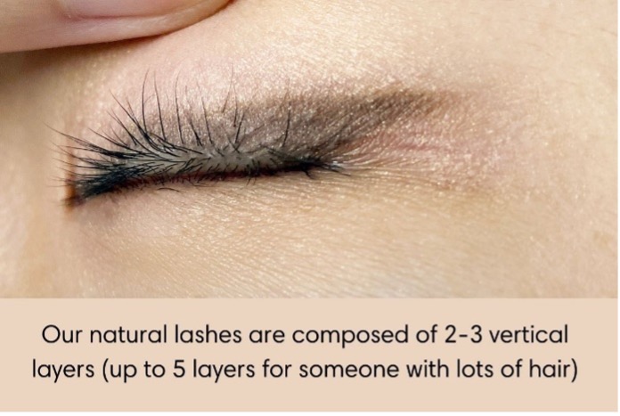 Key phrase | Capping & stacking lashes: Capping is where you overlap a lash with another lash and is excellent for creating symmetry when a natural lash is shorter than neighbouring lashes. Stacking is a technique where you double up 2 lash extensions with varying lengths and diameters to get a wispier look.