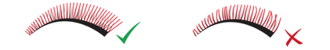 As you can see in the example, if you were to follow the natural lash (image on the right), the overall result would look wobbly and non-uniformed. Creating uniformity comes with practice, and it is all about the angles!