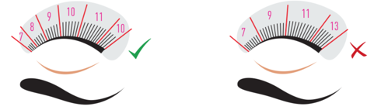 As you can see in the example, the correct graduation will go up and down one length. There are times where you can go from, say a 13 on the outer to an 11, and this will depend on your client’s natural length and the look you are trying to achieve. You can also blend lashes by overlapping lengths within each section. This helps to ensure there is not obvious graduation between each zone.